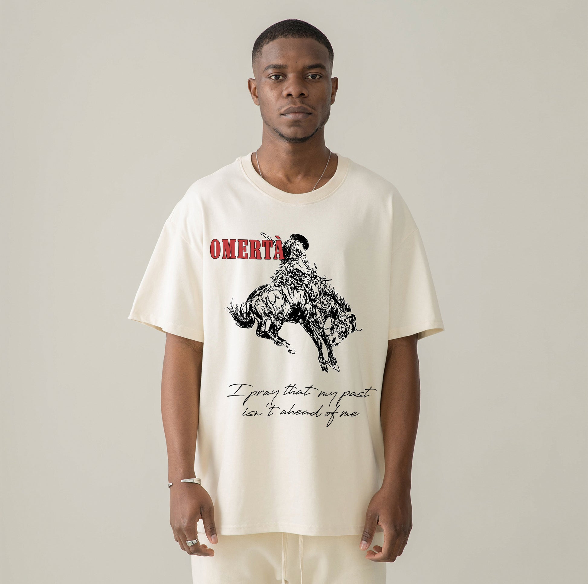 Introducing the Cowboy tee printed on our premium oversized luxury blank in cream. Made from premium-quality cotton, the tee offers an experience of ultimate luxury and comfort. The fabric is soft and smooth against the skin, with a weight and texture that feels substantial without being too heavy.
